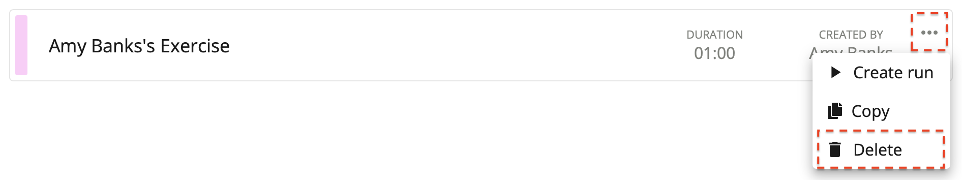 Open the Options menu for the exercise you wish to delete.