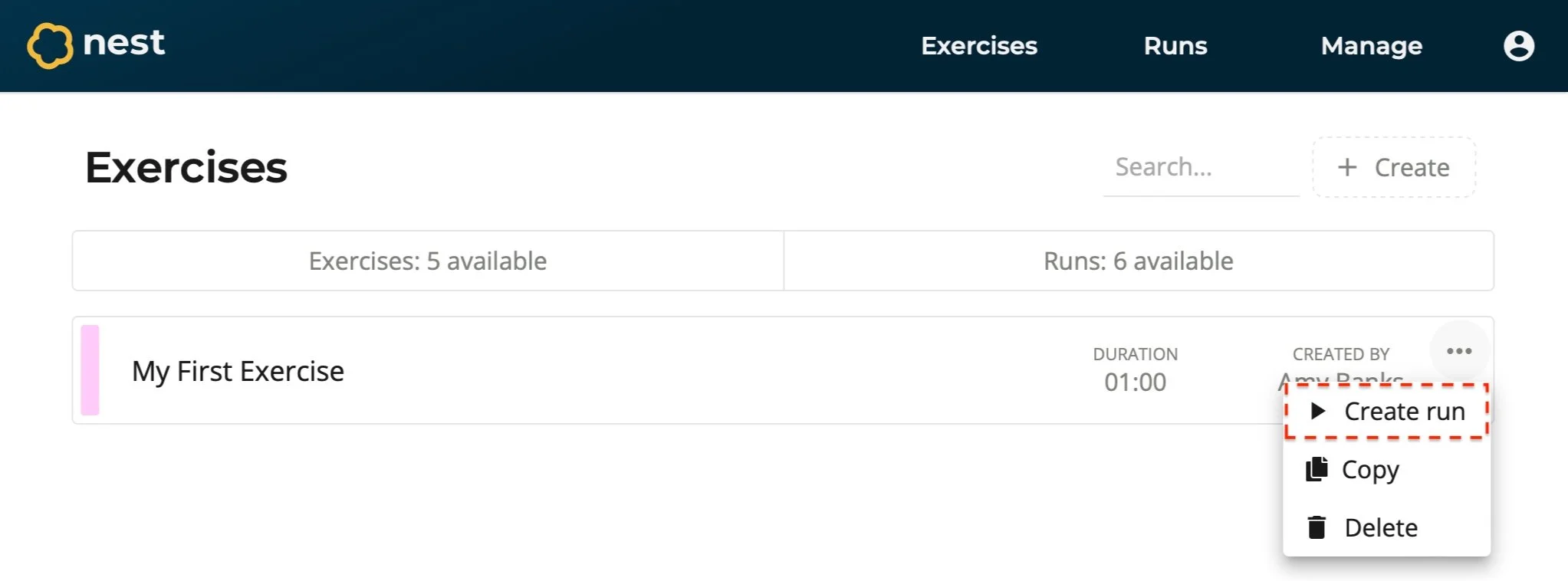 Select Create Run. You will be redirected to your new run.